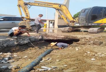 2015年8月1日早上八點(diǎn),宜城天河供水公司接到電話,隨南路天鑫油脂門(mén)口有大量水涌出,路面積滿(mǎn)自來(lái)水。接到電話的搶修人員迅速趕往現(xiàn)場(chǎng)。因考慮到此路段供水面積大、用戶(hù)多,為縮短停水時(shí)間,盡早恢復(fù)供水,搶修人員邊組織人員在漏水點(diǎn)進(jìn)行開(kāi)挖,邊根據(jù)經(jīng)驗(yàn)做好備件材料的準(zhǔn)備工作,克服了高溫酷暑,水泥路面硬不好開(kāi)挖的困難,從烈日炎炎的白天,連續(xù)作戰(zhàn)到夜深人靜,加班加點(diǎn)的完成了搶修任務(wù),于8月2日凌晨3點(diǎn)完成了漏點(diǎn)搶修工作,8點(diǎn)恢復(fù)了供水。