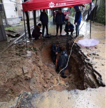 為了盡快完成管道修復(fù)工作,及時(shí)恢復(fù)供水,搶修隊(duì)在現(xiàn)場(chǎng)制定搶修方案,組織搶修人員關(guān)閉閥門、開(kāi)挖路面,并根據(jù)經(jīng)驗(yàn)迅速調(diào)集搶修工具和物品,做好材料的準(zhǔn)備工作。雖然天空下著大雨,給搶修工作帶來(lái)了不便,但搶修人員不畏辛苦,加班加點(diǎn),冒著大雨依然緊張有序地開(kāi)展著搶修工作,從白天奮戰(zhàn)到天黑,經(jīng)過(guò)8個(gè)小時(shí)的奮力搶修,供水管道故障全面排除,于晚上19點(diǎn)20分恢復(fù)了正常供水。