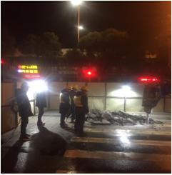 21時(shí)30分,工程公司專職安全人員負(fù)責(zé)道路安全環(huán)保圍擋及警示隔離,疏導(dǎo)交通,安全科學(xué)引導(dǎo)搶險(xiǎn)車輛、設(shè)備和過往車輛及行人。第四項(xiàng)目部主任吳禮軍與襄城管網(wǎng)經(jīng)理等其他同事認(rèn)真細(xì)致對(duì)漏點(diǎn)周邊地下情況進(jìn)行安全排查,確保無隱患的前提下,機(jī)械對(duì)路面進(jìn)行細(xì)致勘探開挖,尋找漏點(diǎn)。